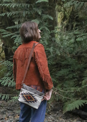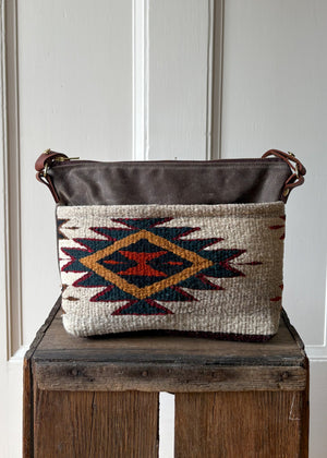 Made from waxed canvas and a richly hand woven textile sourced in Teotitlán del Valle, Oaxaca, Mexico - this one-of-a-kind crossbody bag carries the texture of autumn and the spirit of the land that inspired it.